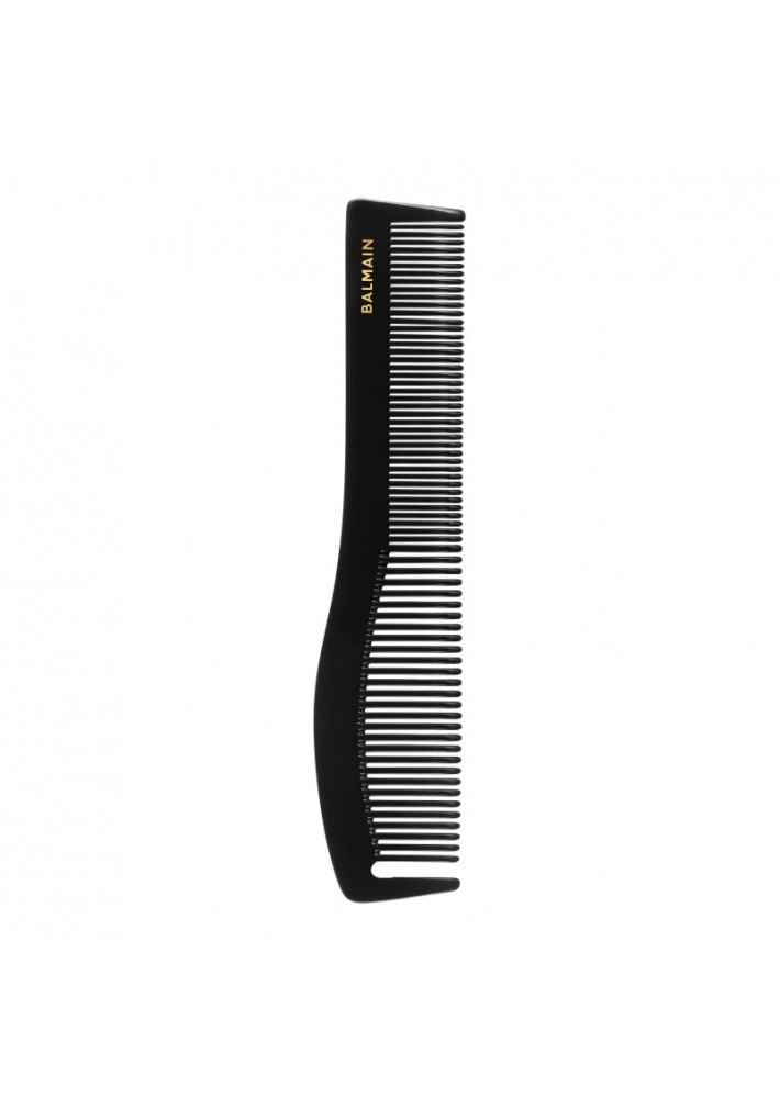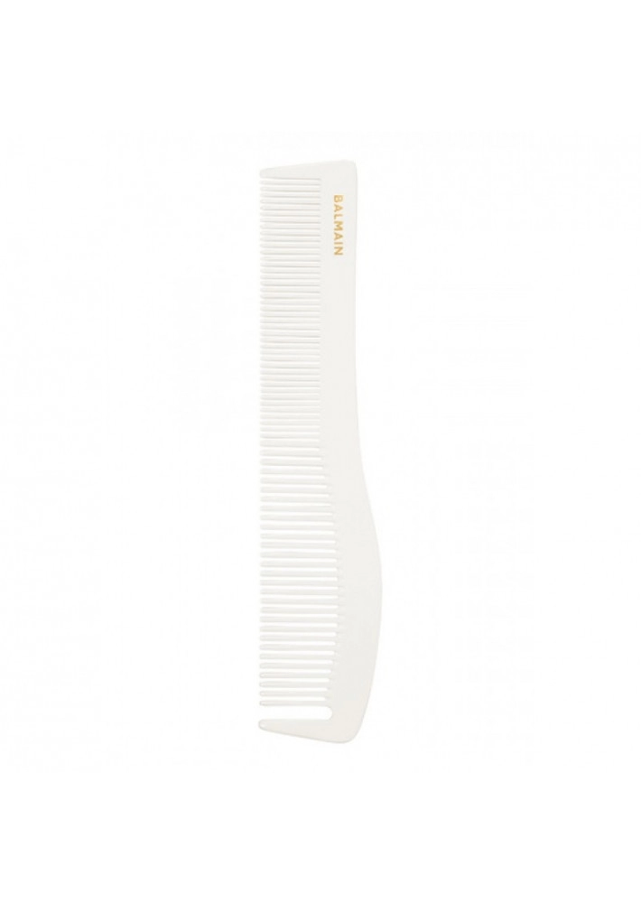 Глянцевая профессиональная расческа ручной работы для комфортной укладки. Ее прямые края предназначены для создания аккуратного среза, а специальный зубец – для легкого разделения волос на пряди.